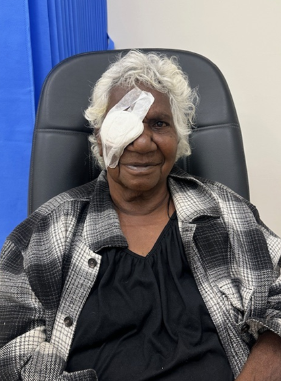 Gwen from Ngukurr is known to the program as we operated on both of her husband’s eyes on previous IRIS trips in 2023. Gwen was exceptionally pleased to see familiar faces within the team and was happy to have the surgery given the trust that had been established when she supported her husband’s surgery. Gwen can now see well again and was laughing that she would not recognise Barry anymore as he had looked blurry for so long.